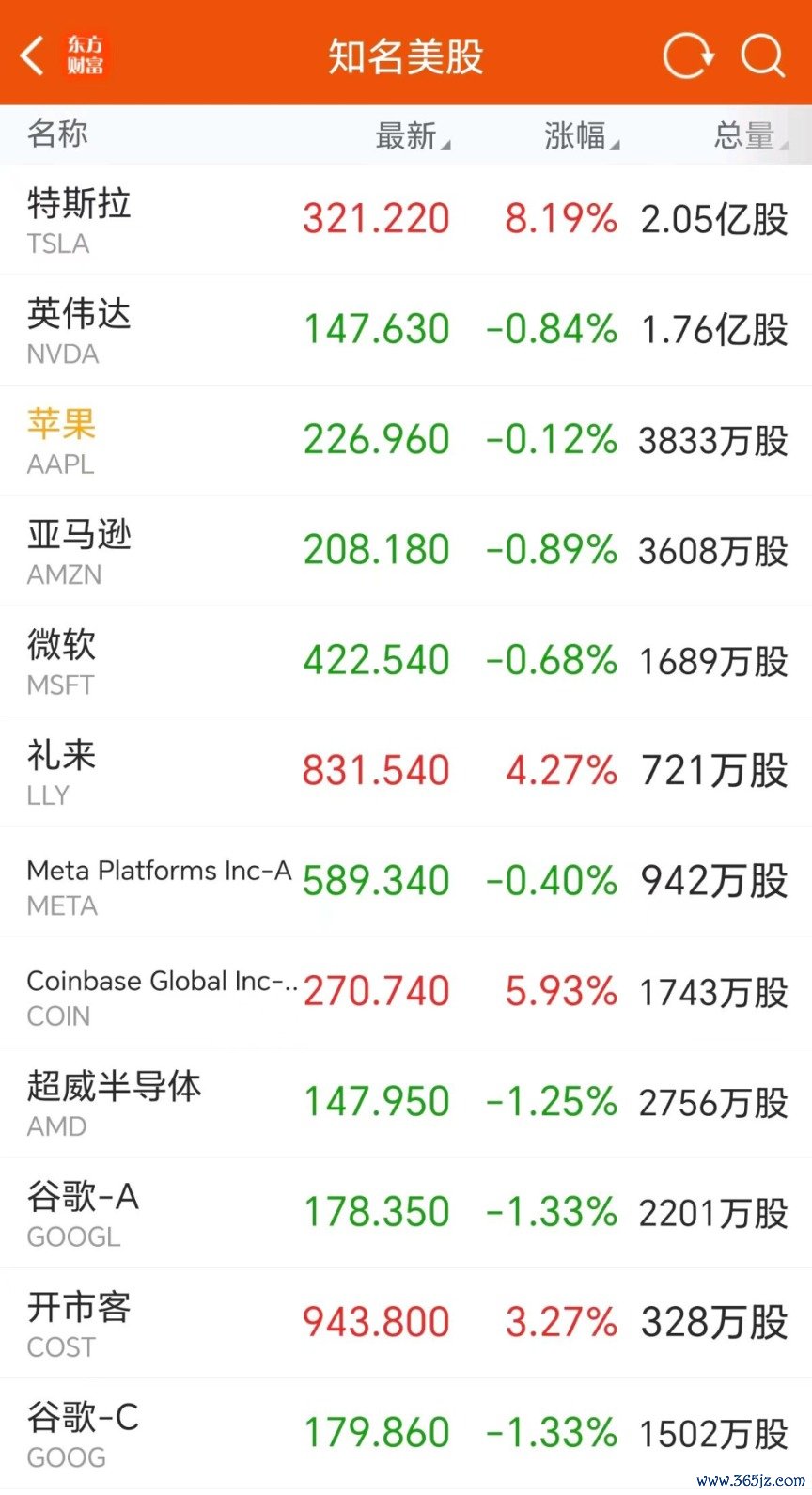 大型科技股普遍下跌,谷歌-A跌超1%,亚马逊下跌0.89%,英伟达下跌0.84%,微软下跌0.68%,苹果下跌0.12%。