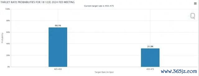 目前市场已经减少了对12月将再次降息的押注。芝商所利率观察工具显示,美联储12月维持利率不变的可能性为32%,远高于一个月前的14%。