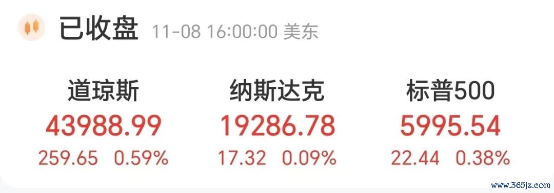 当地时间周五(11月8日)美股三大指数均创历史新高,截至收盘,标普500指数收涨22.44点,涨幅0.38%,报5995.54点。